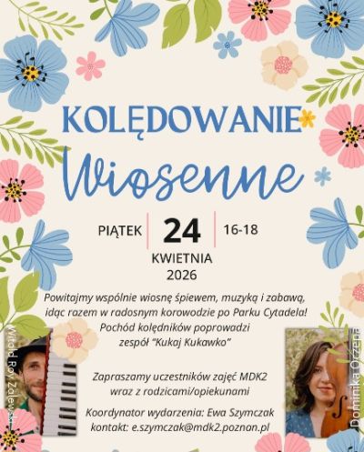 Powitajmy wspólnie wiosnę śpiewem, muzyką i zabawą, idąc razem w radosnym korowodzie po Parku Cytadela! Pochód kolędników poprowadzi zespół "Kukaj Kukawko".