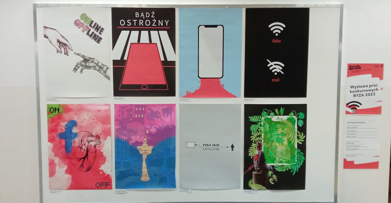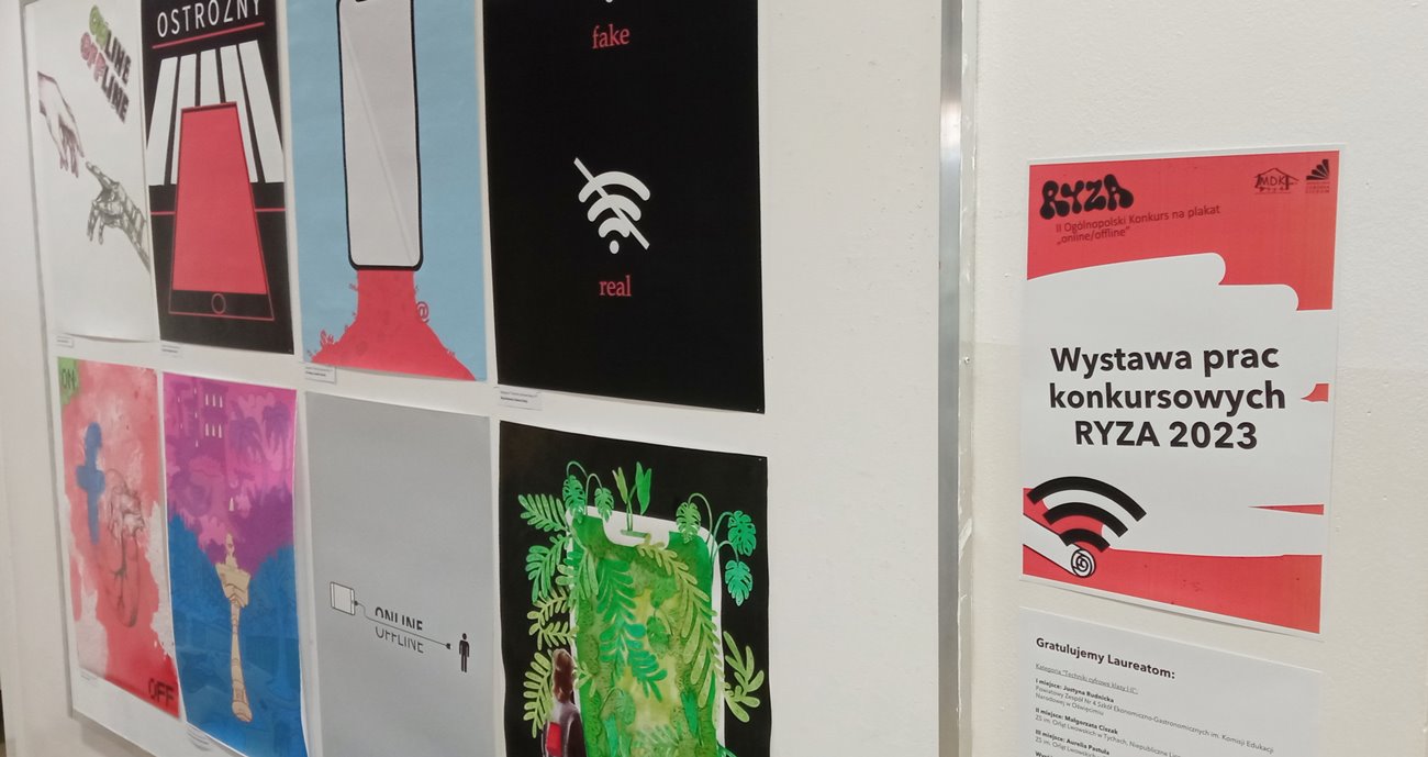 Wystawa prac konkursowych II Ogólnopolskiego konkursu na plakat RYZA 2023 pod hasłem “Online/offline” Publikacja: 22 marca 2023. WYSTAWA - II Ogólnopolskiego konkursu na plakat RYZA 2023 pod hasłem “Online/offline” Poprzednia Następna